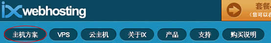 一、打开中文站cn.ixwebhosting.com,然后在界面上方点击”主机方案”,进入虚拟主机套餐介绍界面。