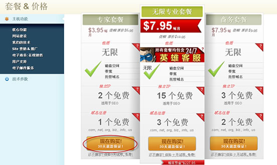 二、点击主机方案下方的”立即购买”按钮。这里不要求一定要点击你想购买的方案下方的按钮。因为后面还是可以修改方案的。