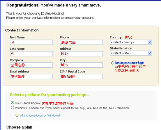 三、如图,进入下图所示的界面。根据提示填写你的信息,然后选择好要购买的系统。