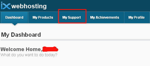 首先登陆IXWebhosting主机后台控制面板,点击导航中的“my support”按钮,如下图所示: