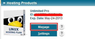 一、登录IXWebHosting管理面板。登录地址:http://manage.ixwebhosting.com,输入用户名,密码之后进入IXWebHosting虚拟主机管理面板,然后点击主机下方的Manage按钮。